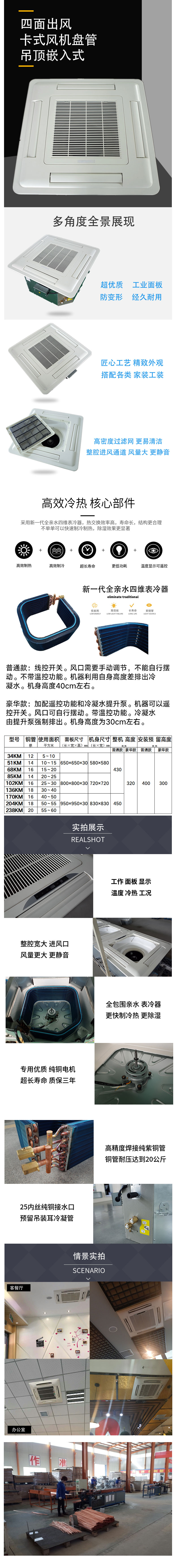 名稱:卡盤式風機盤管 公司:山東晴朗空調科技有限公司 品牌:晴朗空調 類型:明裝風機盤管 型號:定制訂做 電話:18605341118 風機盤管機組簡稱風機盤管。它是由小型風機、電動機和盤管(空氣換熱器)等組成的空調系統末端裝置之一。盤管管內流過冷凍水或熱水時與管外空氣換熱,使空氣被冷卻,除濕或加 咨詢價格產品中心返回上頁