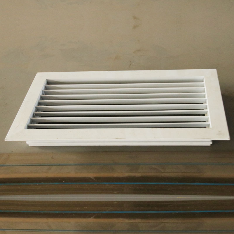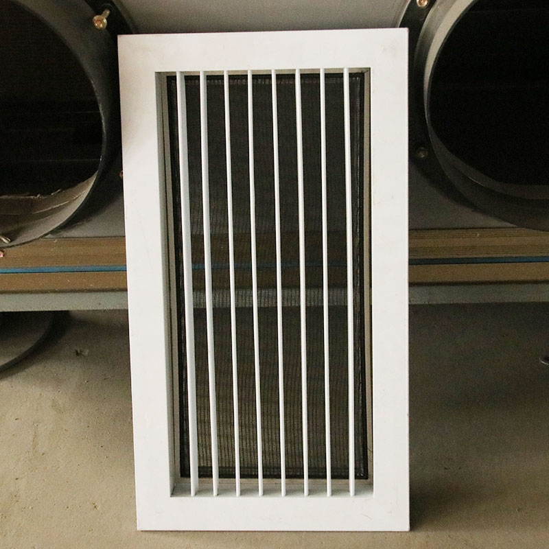 單層可調百葉風口常用于管道中的吸、送風用,同時可根據實際情況配上人字閘(多葉對開調節閥),用以控制風量或安裝鋁合金過濾器,進行配套使用。葉片可分為橫放和豎放兩種,