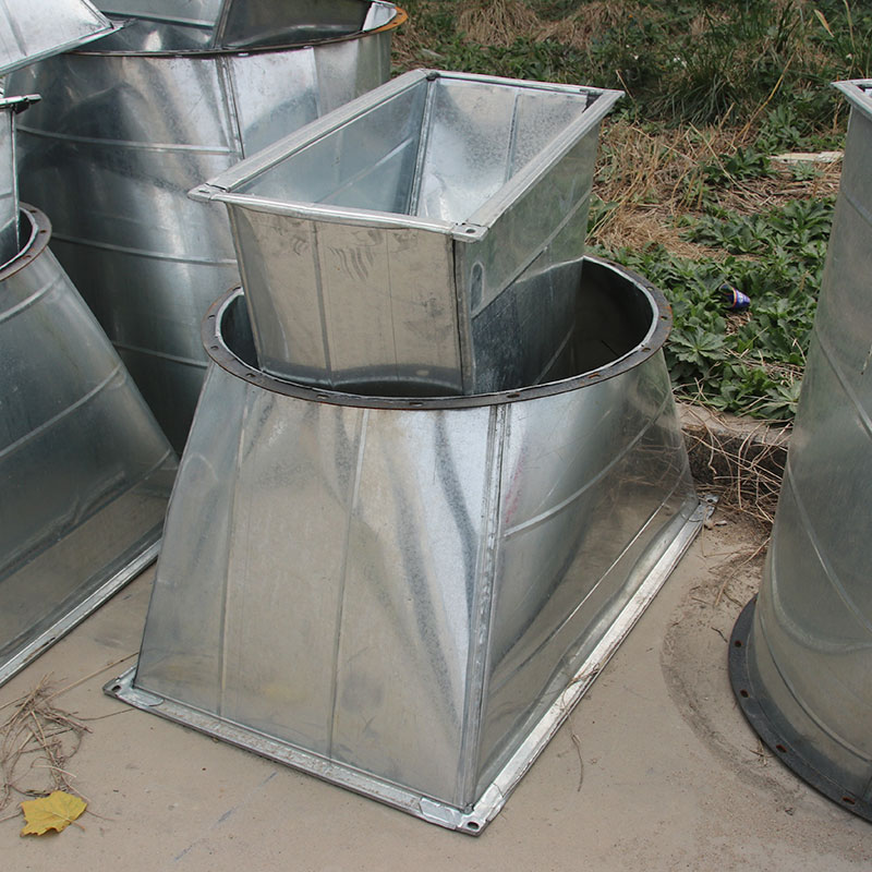 天圓地方管又稱方圓變徑管,管的下身和上身的形狀是圓和方形,一般適用于特殊結(jié)構(gòu)的構(gòu)件,例如圓通風(fēng)管與風(fēng)機(jī)出口,空調(diào)機(jī)組與風(fēng)機(jī)進(jìn)口等方面的連接。方圓變徑管用途:圓通風(fēng)