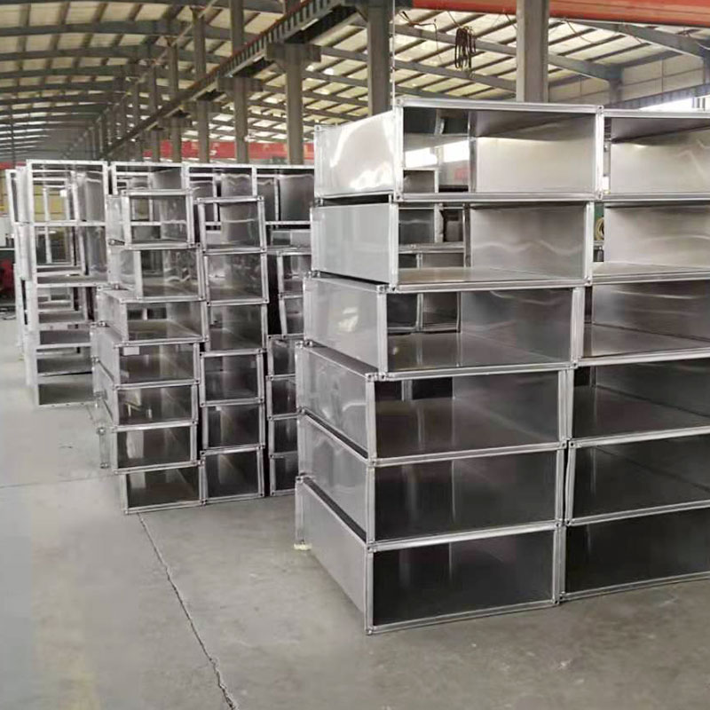 共板法蘭主要由角碼、法蘭夾,及與風管一體相連的法蘭連接,這種形式風管雖然造價較低(減少了角鋼用量,減少了制作角鋼法蘭的人工用量),但是實際應用起來不如角鋼法蘭牢固