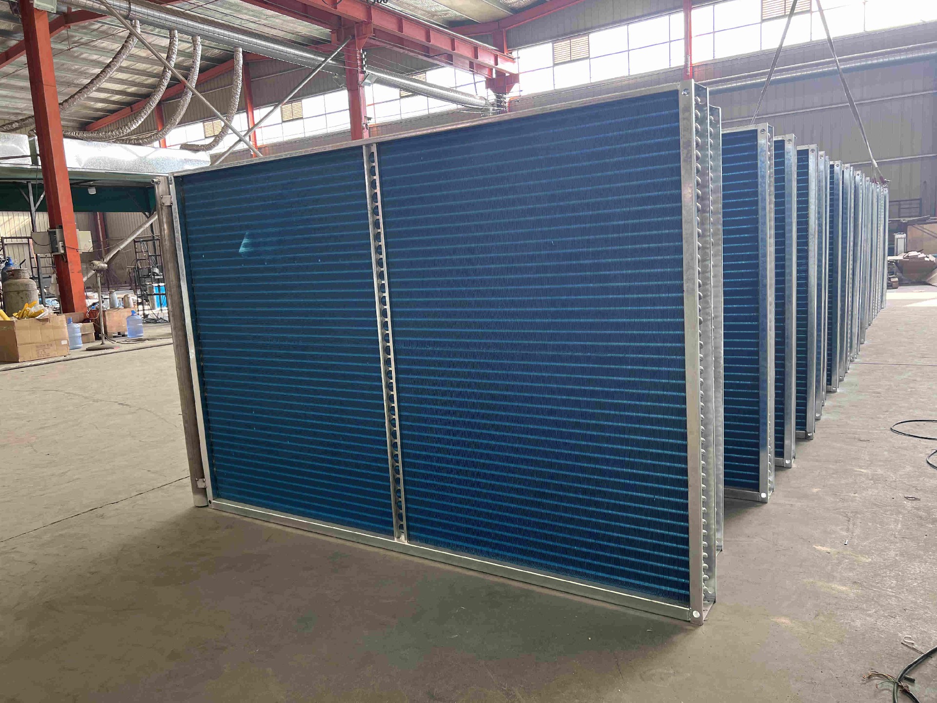 表冷器是由金屬(紫銅或鋼)管套鋁片,(雙翻邊)經液壓漲管后成形的散熱器,該產品具有重量輕,翅片與(紫銅或鋼)管接觸緊密,傳熱性能與空氣流動性能良好,其性能達到國內先進水平,適用于水冷式、冷卻系統,(也可以用于蒸汽及高溫水加熱系統)適用于集中冷卻、加熱空氣的換熱裝置,因此在采暖、供冷空氣調節、洗滌烘干設備、去濕工程中廣泛應用。